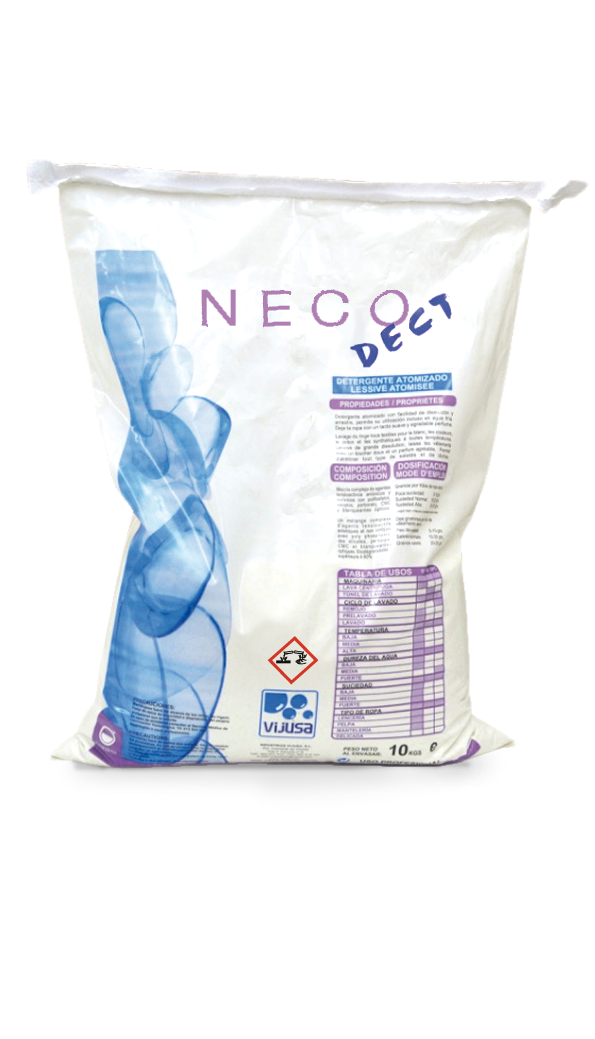 Detergente atomizado a base de agentes tensioactivos aniónicos y no-iónicos. Contiene también polifosfatos, silicatos, CMC, enzimas, perfumes y blanqueantes ópticos.